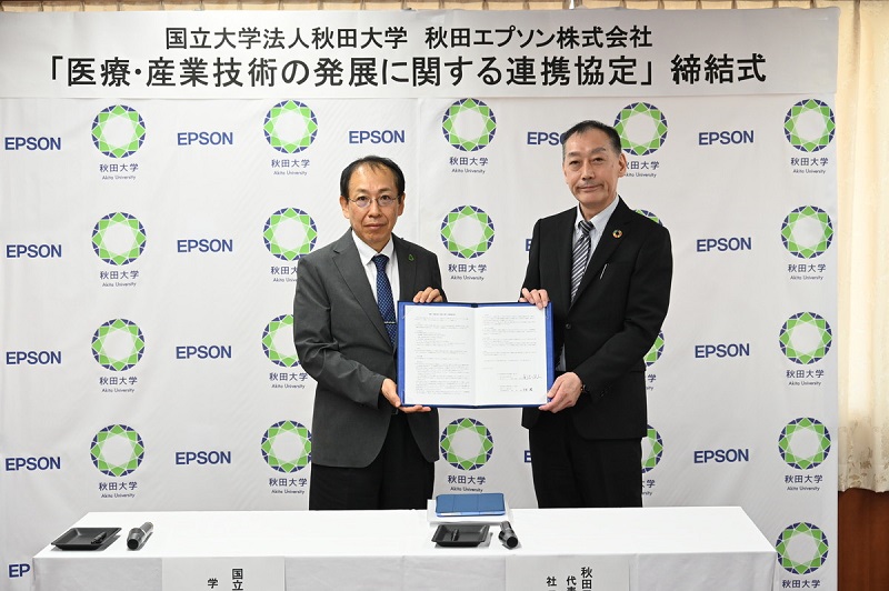 秋田大学は、令和7年7月28日(月)、秋田エプソン株式会社と包括的な連携協定の締結式を、秋田大学手形キャンパスにおいて挙行した。
